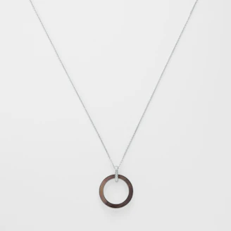 洗練されたサークルフォルムと黒蝶貝の奥行きある輝きがシックなネックレス。