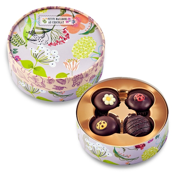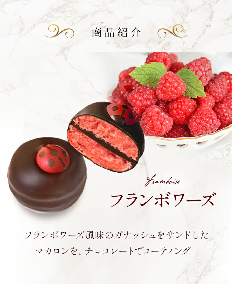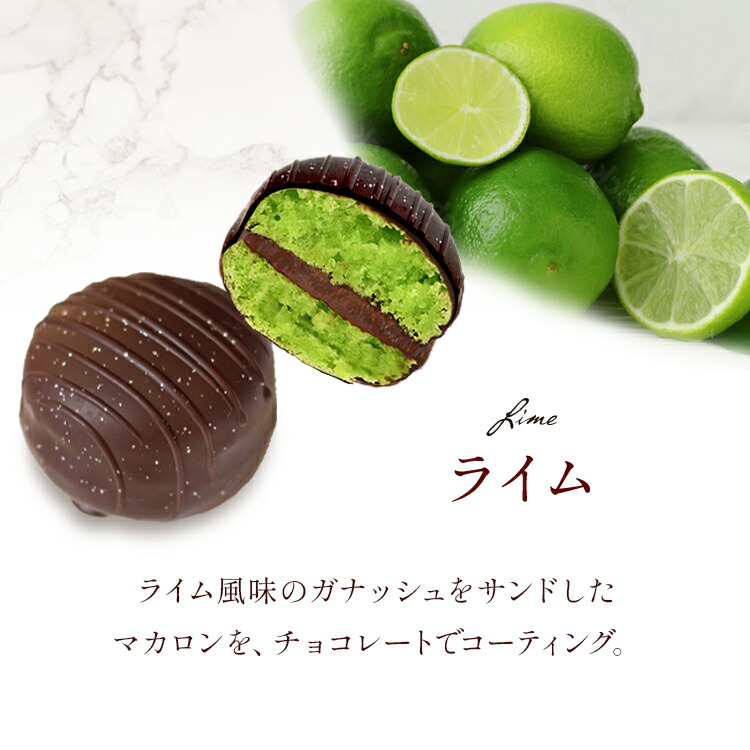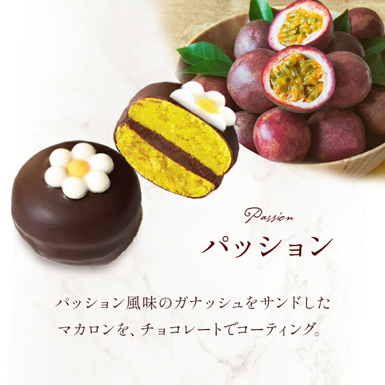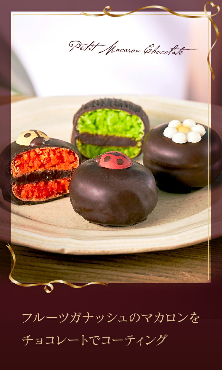 4種のフルーツガナッシュのマカロンをチョコレートでコーティング。