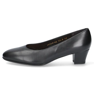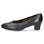 通勤や冠婚葬祭など、いろいろな場面で活躍する万能アイテムの黒プレーンパンプス。外反母趾対応ですが、シルエットがすっきりと綺麗に見えるように靴型を工夫して作りました。ヒール高は歩きやすい4cm、トゥ形は優しい印象の丸みを帯びたスクエア形状です。甲革には防水キップ(牛革)を使用しているので、晴雨兼用としてお履きいただけます。