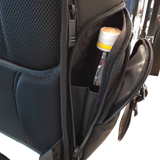 サイドのファスナーポケットにはペットボトルや折り畳み傘の収納に最適です。両サイドに計4つのポケットを装備