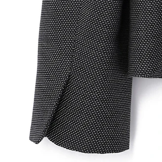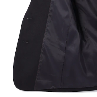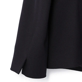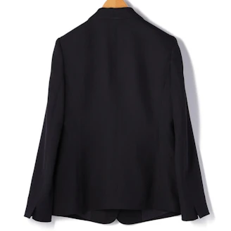 フロントは2つボタン、左右にフラップポケットを配置し袖口にはさりげなくベンツがあしらわれています。