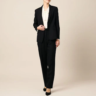 スリムなラベルでエレガントに仕上げたテーラードジャケットとパンツ。