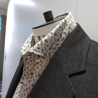 インナーには、現代のビジネスシーンには欠かせないジャージ素材の、フラワープリントシャツがスタイリッシュです。