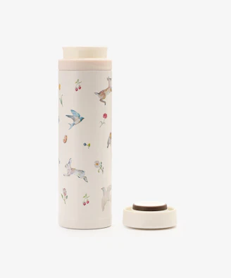 繊細なタッチで描かれた、アニマルやフラワーモチーフの愛らしいアートが魅力です。高級感ある円柱型のボックスに入っており、ご自身用にはもちろんギフトとしてもおすすめのアイテムです。こちらは本体の内側と外側の間が真空になった、熱が伝わりにくいステンレス二重構造なのもうれしいところ。