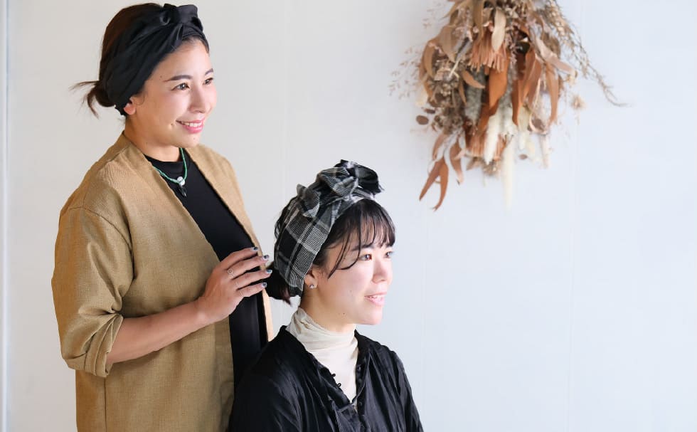 「Turbou」は、がん治療による脱毛に悩む友人の相談をきっかけに、広島県福山市のMITY turbouプロデューサー/diporto合同会社代表・髙田弥代氏が開発したヘアアクセサリーです。ターバンと帽子、両方の機能を備えています。市販の類似品には、デザイン性の乏しさや締め付けの強さといった課題がありました。そうした声に応えるため、試作と改良を重ね、誰でも簡単に着用でき、日常使いしやすいアイテムとして完成しました。